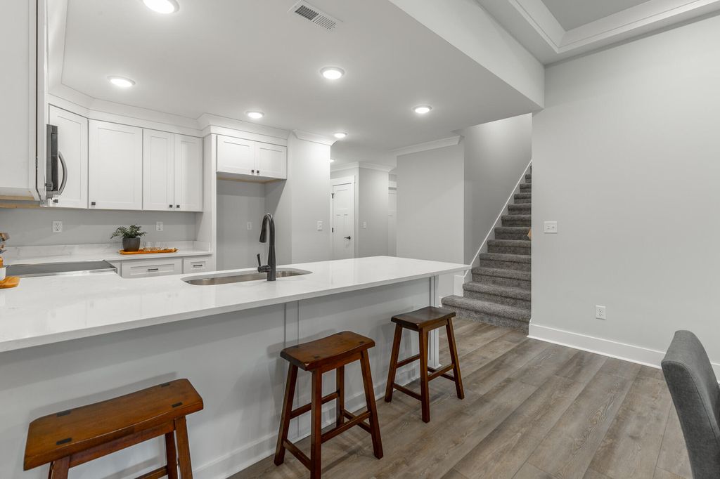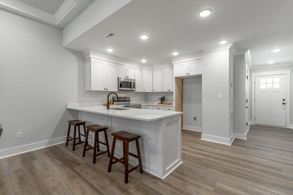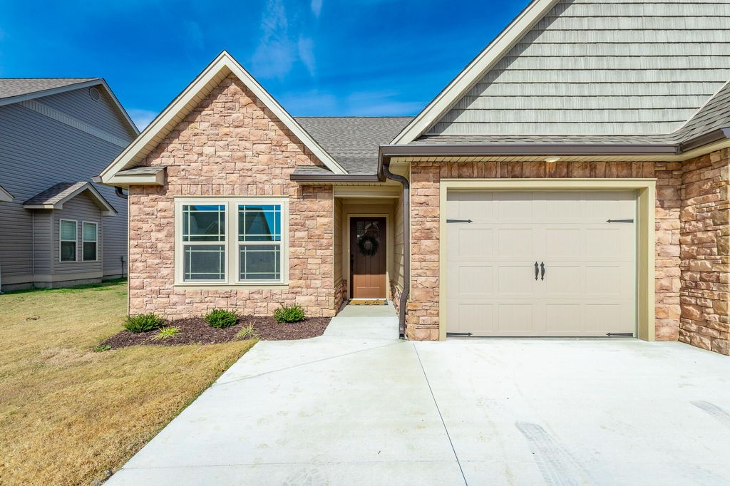New construction one-level townhome in gated community with yard maintenance included! As you step inside the entry you'll find the guest bedroom and full bathroom right up front, providing separation from the master suite. Take a few more steps into the wide open living room, dining area and living room with gas fireplace, coffered ceilings and hardwood floors. The kitchen features a large eat-up peninsula, stainless steel appliances and beautiful white counter tops. The spacious master suite has a tray ceiling, double vanity, walk-in tile shower and walk-in closet. Outside you'll find a nice sized covered patio with uncovered grill space. This unit also features a laundry with cabinets for extra storage, a one car garage and oversized driveway with room for 2 more vehicles. Upstairs you'll find a large attic for storage without having to climb a ladder! Sunset cove is a gated community where the HOA handles the yard and is located just minutes to shopping, dining and health care in East Ridge or Fort Oglethorpe!
