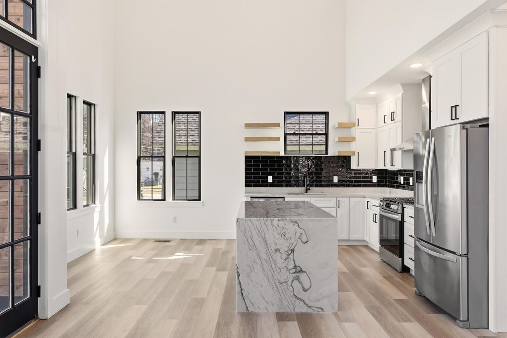 Welcome to 28 Sawyer Street, a stunning like new home in the highly desirable Hill City neighborhood. This thoughtfully designed 3 bedroom, 2.5 bath home is just a short stroll to several dining options, the Walnut Street Bridge and Coolidge Park, and only blocks from Stringers Ridge and White Oak Park. Step inside to discover abundant natural light, beautiful LVP flooring throughout, and elegant quartzite countertops in the kitchen and baths. The show stopping kitchen features a dramatic waterfall island, decorative lighting, and tasteful, modern finishes that flow seamlessly into the living space anchored by an impressive 80'' contemporary fireplace. Enjoy outdoor entertaining on the spacious deck located above the two car carport, along with ample additional parking for guests. The main level offers a generous primary suite with walk-in closet, double sinks, and an oversized tile shower with double shower heads. A separate laundry space is conveniently located outside the primary, and includes a washer and dryer. Upstair there is a loft area to utilize for additional living space, two additional bedrooms, and a full bathroom. This home has been carefully curated with details throughout. Experience the best of North Chattanooga living, schedule your private showing today!