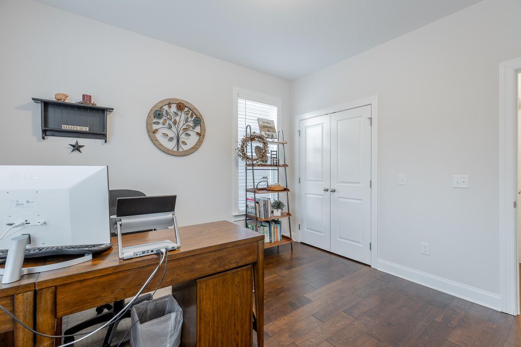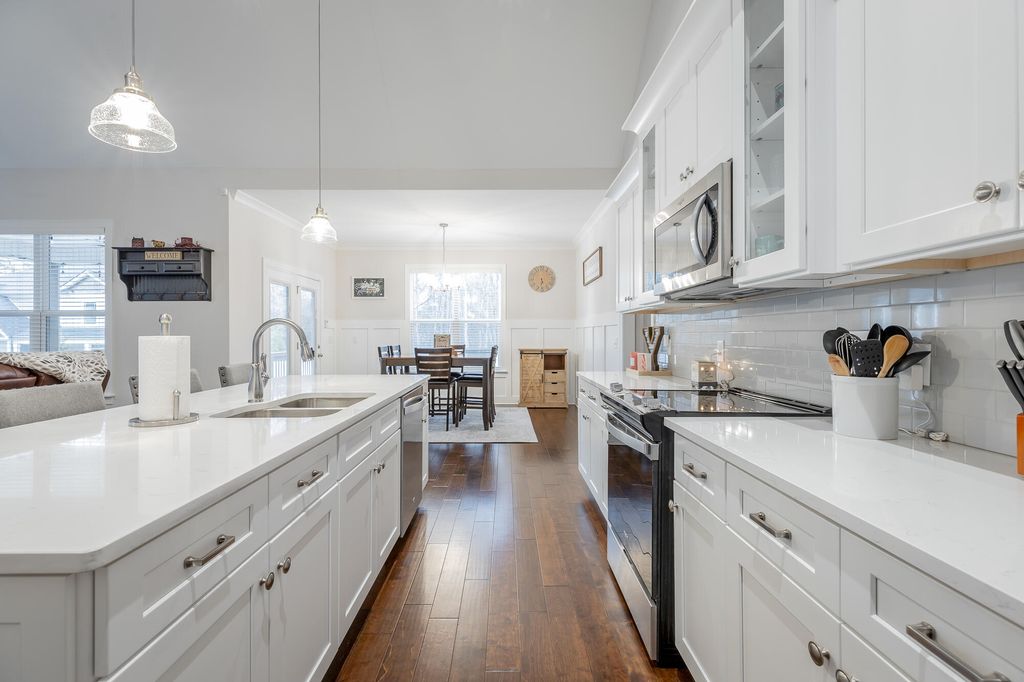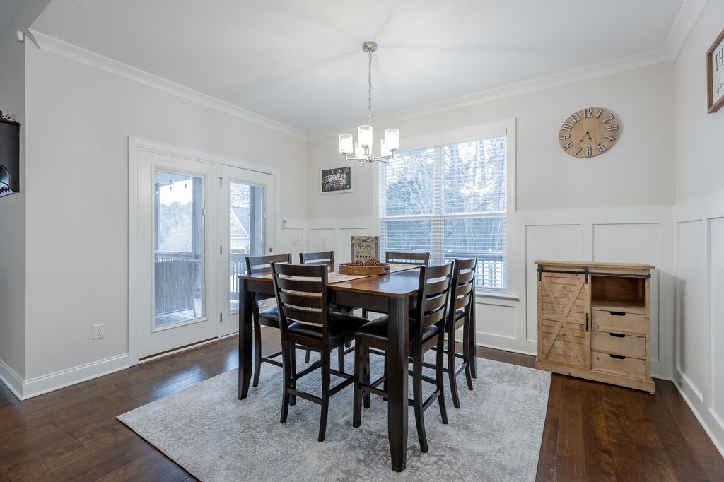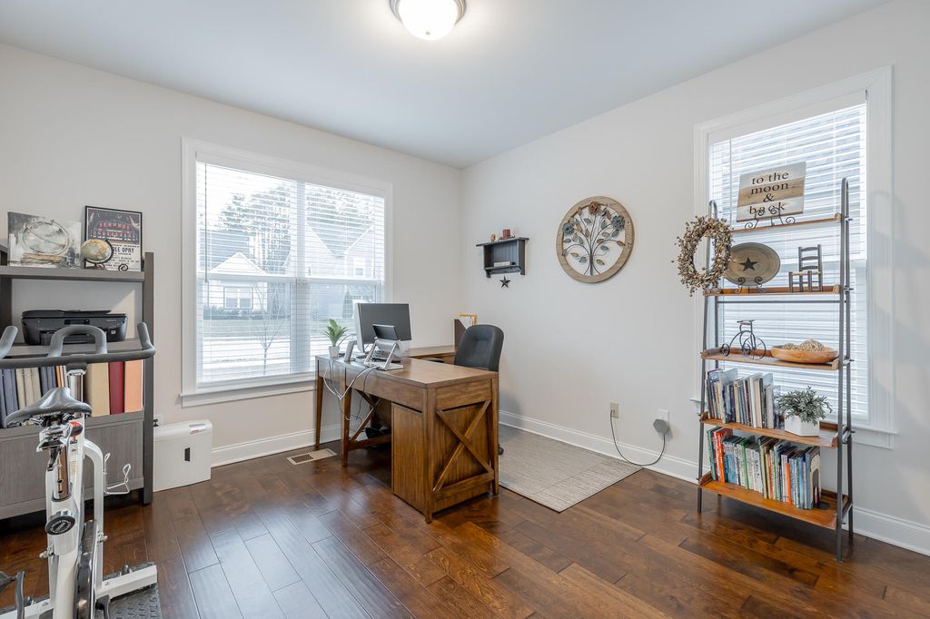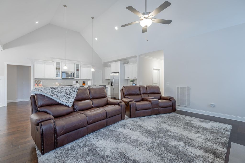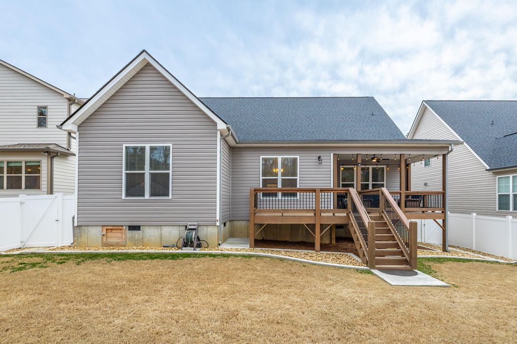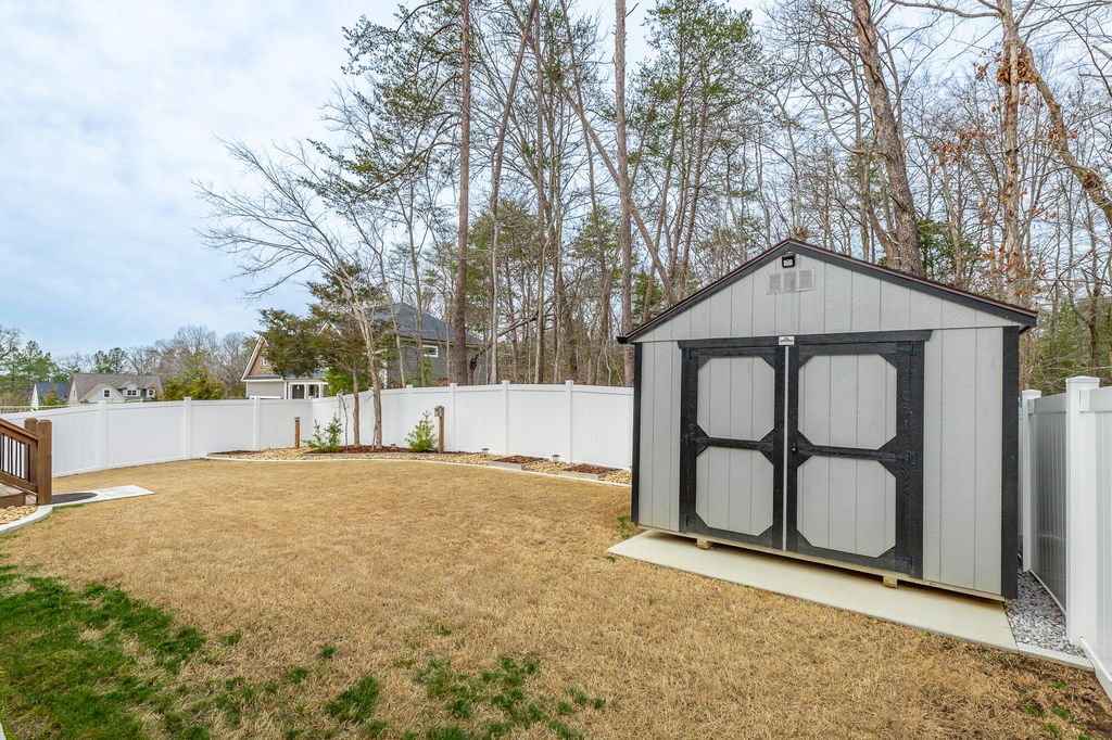 Discover your dream home at 6486 Satjanon Drive in the highly sought-after Highlands at Belleau Ridge subdivision. This stunning craftsman-style single-family home, built in 2023, offers the perfect blend of modern elegance and thoughtful upgrades that elevate it above new construction. With 5 spacious bedrooms and 3 bathrooms, this home caters to families of all sizes. The master suite is conveniently located on the main level, accompanied by an additional bedroom for guests or an office. The open floor plan seamlessly combines the living and dining areas, making it perfect for entertaining. The gourmet kitchen boasts granite countertops, ideal for culinary enthusiasts. Ascend to the upper level to find 3 more bedrooms and a full bathroom, ensuring ample space for family and visitors. Step outside to relax on the back deck, overlooking a level, landscaped backyard that provides both privacy and a perfect space for outdoor gatherings. Additional features include concrete landscape curbing, a 10' x 10' storage building, vinyl privacy fencing, and drainage control landscaping--all upgrades you'll appreciate. This home also includes a floored attic with shelving, giving you extra storage options. Staying with the home at no extra cost are a 75'' TV over the fireplace, a gas fire pit, barstools, and a Ring security system. Enjoy the perks of a wonderful neighborhood and an excellent school zone. This meticulously maintained home is truly better than new! Call your favorite Realtor today to schedule your appointment and see this exceptional property before it's sold!