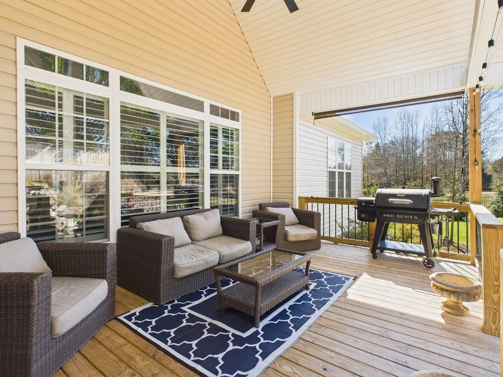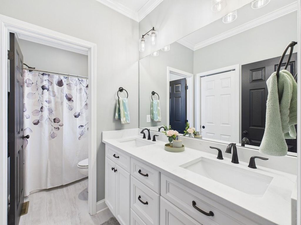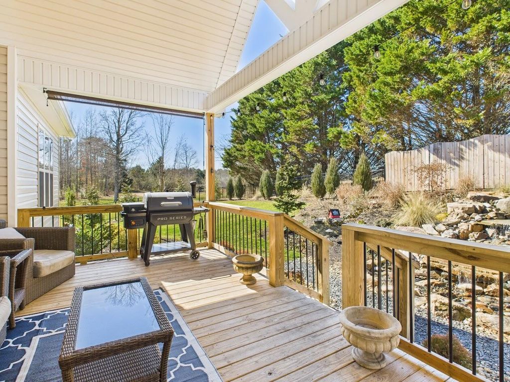 Welcome home to this beautifully appointed residence in the prestigious Lennox Pointe community, where comfort, privacy, and natural beauty come together in perfect harmony. Situated on nearly an acre, this exceptional property features a stunning natural waterfall -- visible and gently heard from both the living area and the primary suite -- creating a serene atmosphere you'll enjoy every day. Inside, the home offers up to four bedrooms (3-bedroom septic) and 3.5 baths, designed with open-concept living, soaring ceilings, and abundant natural light that create an airy yet refined ambiance. Each bedroom features an attached bath and spacious walk-in closet, offering both convenience and privacy. The owner's suite is thoughtfully separated from the guest rooms and showcases tranquil waterfall views right outside the window. The luxurious en-suite bath features a soaking tub, a tiled shower, a built-in bidet toilet, and an expansive walk-in closet with ample wardrobe storage. Two additional bedrooms are located on the main level, along with another full and half bath. Upstairs, you'll find a versatile bonus living area perfect for a media room or private retreat, extra storage, easy attic access, and a fourth bedroom with a walk-in closet and full bath. Outdoors, a covered porch overlooks the peaceful waterfall setting, while professionally landscaped grounds enhance the home's curb appeal. A portion of the yard is enclosed with a high-quality metal fence, and beyond it, a wooded fire-pit oasis awaits -- ideal for quiet evenings or entertaining under the stars. The property backs a small church, providing added privacy with no immediate rear neighbors. This is more than a home -- it's a retreat designed for everyday luxury living.