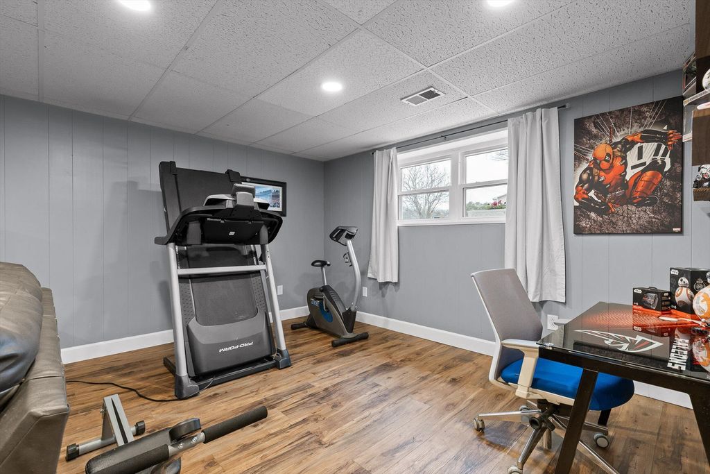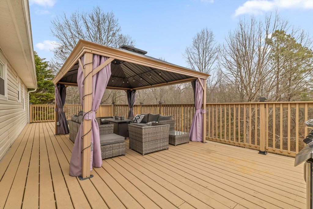 Great home for family with almost 1 acre fenced in backyard. The house has 3 bedrooms and 2 bathrooms upstairs with a large deck. Upstairs is also a dining room, kitchen, and den. Downstairs is the family room with space for exercise equipment. The deck has an attached gazebo that stays. A new roof was installed in February 2026. New carpet in all the bedrooms.