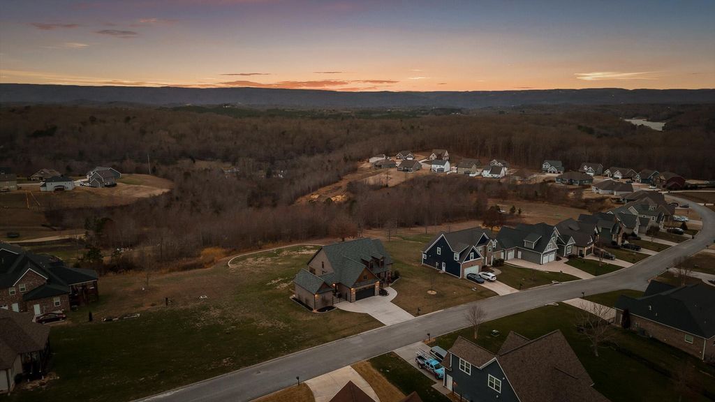 Rocky City Views in Soddy Daisy! This custom home will pull at your heart strings with truly one of a kind views of SUNRISE & SUNSET! Once you walk in, you'll never want to leave! This beautiful home sits on an acre of land that is beautifully landscaped, has an irrigation system built in, raised garden beds, a garden house or workshop with an iron breezeway that is connected to the garage. To complete this outdoor oasis, there is a retaining wall at the back of the property to create a flat backyard, 2 porches- a grilling porch and a screened in porch, under-deck storage with a concrete floor, an encapsulated crawl space-- It's truly amazing! Inside, you find an open floor plan with gorgeous hardwood in the living areas, vaulted ceilings and a dream kitchen with all stainless appliances & a huge island that features extra cabinets underneath. What a great setup for people who like to cook and entertain at the same time. Turn on the fireplace, open the door to the screened porch and enjoy the upcoming spring evenings! You'll find a lovely primary suite on the main floor, a second bedroom & a tiled sun drenched sunroom with French doors-- the view from this room is stunning! Upstairs, you'll find a finished bonus room and bedroom suite that would be perfect for a teenager or lodging out-of-town guests. It has a separate entrance from the garage and is very private but one could easily add stairs into the main entryway to connect the two spaces if you have a family that doesn't want to be disconnected. Another impressive feature is the STORAGE! a massive attic space with tons of storage shelves! This home really has it all- and is immaculate! If you want the neighborhood pool & golf cart life- this neighborhood is perfect for cruising the roads and hitting the pool all while enjoying daily sunrise and sunsets!