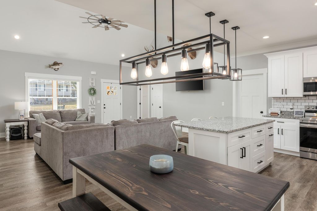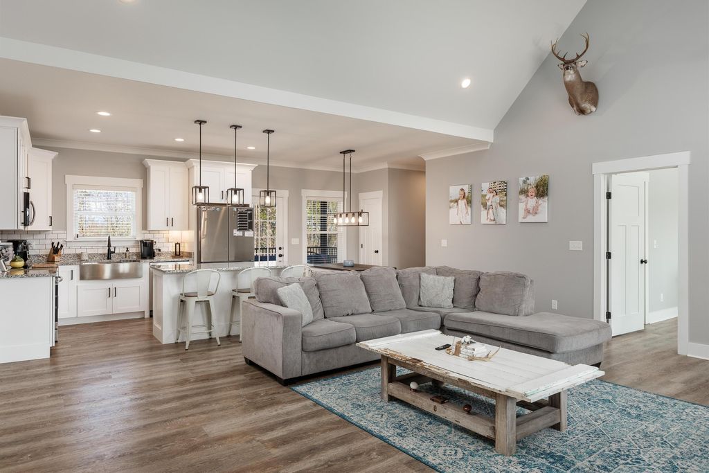 Welcome home to this beautiful all one level home in the Lakesite Community! This home features a wonderful open floor plan with three bedrooms and two and half baths! This custom-built home has a split bedroom floor plan, luxury vinyl flooring throughout and beautiful ceramic tile in the bathrooms and laundry room! The kitchen is a cook's dream, with lots of counter space, stainless steel appliances and a stainless-steel farm sink. There is a nice size laundry room right off the kitchen making it easy to keep that never ending chore complete. The primary bedroom is a wonderful size, with a large walk-in closet. The primary bathroom features a double vanity, walk in shower with beautiful tile and a separate tub for soaking after a long day! The two additional bedrooms are a wonderful size and have a jack n jill bathroom. There is also a half bath for guests. With spring around the corner you will enjoy relaxing on the oversized screened in back porch that overlooks the large backyard with glimpses of the adjacent marina and lake! If storage is a concern, then you will LOVE the size of the garage. The sellers customized the garage to accommodate larger vehicles and still allow room for shelving etc. There is also a utility garage along the underneath of the home offering even more storage! This home is a must see. Schedule your showing today!