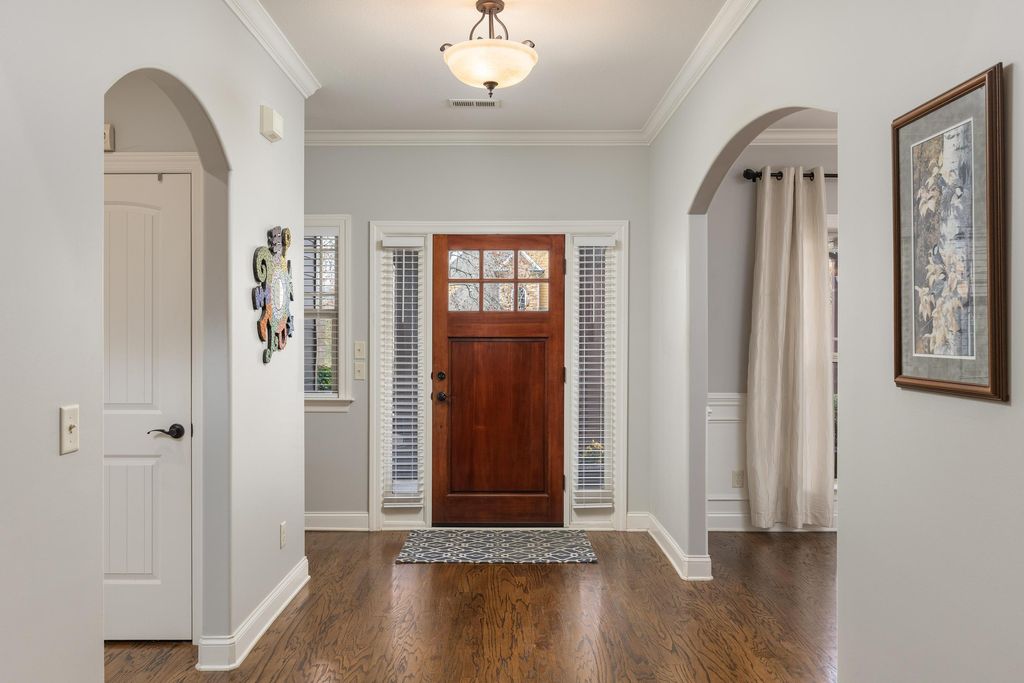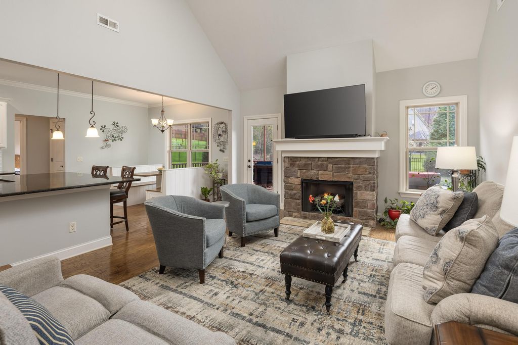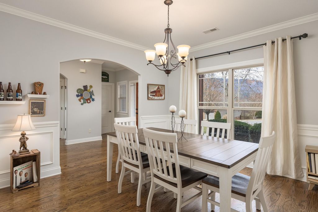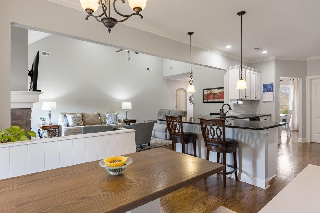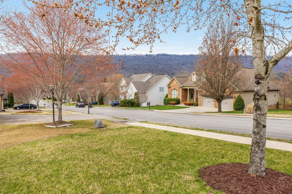 Welcome to the wonderful community of Horse Creek Farms. This thoughtfully designed home offers the ease and comfort of main-level living, featuring a spacious primary suite on the main level and a thoughtful split-bedroom design that provides both privacy and functionality. The inviting foyer welcomes you into the home, with a private office or sitting room on the right and a formal dining room on the left--ideal for everyday living and effortless entertaining. The open-concept living area is filled with natural light, highlighted by soaring ceilings, rich wood floors, and a stunning stone fireplace that serves as the heart of the home. The kitchen is thoughtfully designed with granite countertops, abundant prep space, a generous peninsula with bar seating, and a charming breakfast nook. A built-in dining table with banquet seating remains with the home, creating a cozy and functional gathering space. Just off the living area, the large screened-in porch offers the perfect spot to relax while enjoying the view of Signal Mountain. The primary suite is a private retreat, complete with a sitting area, a beautifully tiled bath featuring dual vanities, and two spacious walk-in closets. Two guest bedrooms share a well-appointed bathroom, while the oversized bonus room above the garage offers flexible space for a playroom, media room, another office, or additional bedroom --along with a walk-out attic with ample storage. Outside, the level, beautifully landscaped yard has been meticulously maintained. Conveniently located just minutes from downtown and the Northshore, you will love the easy access to restaurants, shopping, and all that our vibrant city has to offer.