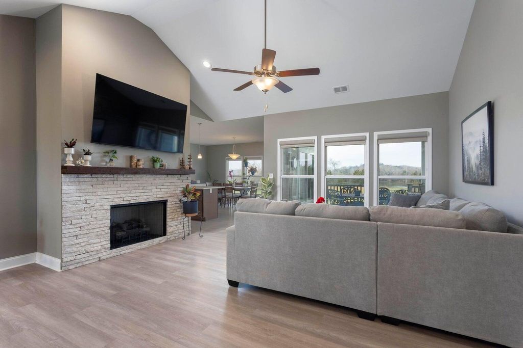 Welcome to your dream waterfront home! Nestled in a prestigious gated subdivision, this stunning ranch-style residence offers an idyllic retreat on 1.8 acres of serene property. Featuring 4 spacious bedrooms and 2 modern bathrooms, this home is perfect for families or those looking to entertain. Step inside to discover the impressive living room adorned with cathedral ceilings, a cozy gas fireplace, and large windows that provide breathtaking views of the lush backyard and tranquil water. The well-appointed kitchen boasts stainless steel appliances, a gas stove, and elegant granite countertops, making it a chef's paradise. Adjacent to the kitchen, the dining area offers a perfect spot to enjoy meals while soaking in the picturesque scenery. The primary bedroom is a true sanctuary, complete with an en-suite bathroom that showcases exquisite tile work, a luxurious walk-in shower, and a dual vanity for convenience. Three additional guest rooms provide ample space for family and friends, accompanied by a stylish guest bathroom. Convenience is key with a dedicated laundry room and an attached 2-car garage. Enjoy the community amenities, including a clubhouse, dock, and boat launch, perfect for making the most of your waterfront living. Don't miss the opportunity to own this remarkable home that combines comfort, style, and the beauty of nature at 4330 Espalier Drive. Schedule your private showing today!