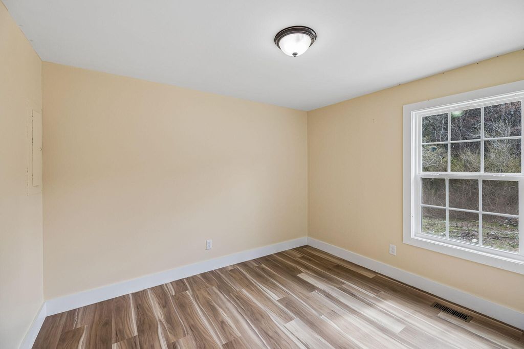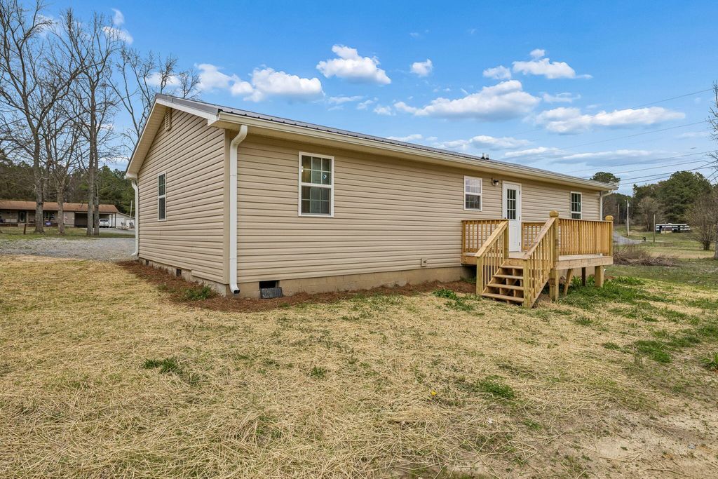 This fully renovated home is perfect for anyone looking for a solid, move-in-ready property where all the big work is already done. Featuring 3 bedrooms and 2 full bathrooms, the layout also includes a versatile bonus room that easily serves as a 4th bedroom or home office. The interior has been completely refreshed with durable LVP flooring throughout and a brand-new kitchen featuring new cabinets and butcherblock countertops. You can move in with total peace of mind knowing the home features a new roof, new vinyl siding, and a new heating and air system. The living space extends outdoors with a new covered front porch and a new back deck, offering plenty of space for relaxing or entertaining. This is a clean, honest, and updated home designed for low-maintenance living for years to come. Seller is adding a backsplash to kitchen, exterior shutters, as well as application of stain to feature wall.