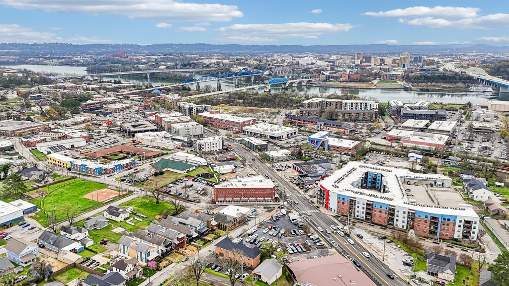 Perfectly positioned in Chattanooga's coveted North Shore, 388 Harper Street presents a rare opportunity to enjoy contemporary living in one of the city's most desirable neighborhoods. Just moments from Cherokee Boulevard, boutique shopping, dining, parks, and the Tennessee Riverwalk, the location captures the best of downtown Chattanooga living. Natural light fills the home, highlighting clean modern lines, hardwood flooring throughout, and a functional open layout. The kitchen features an eat-in bar, dedicated dining space, and an exceptional walk-in pantry with custom cabinetry, along with an oversized stainless refrigerator, gas cooktop, and open shelving. At the heart of the main level is a stunning enclosed terrace that serves as the home's central gathering space. Six sliding bay doors connect the kitchen, hallway, and great room, creating seamless indoor-outdoor flow ideal for both entertaining and everyday living. Outdoor living continues with multiple patios, a charming front veranda wrapped in blooming wisteria, a second-story covered porch with mountain views and refreshing breezes, and an additional patio just off the main terrace. Upstairs, the private primary suite features a walk-in closet with custom cabinetry and a beautifully tiled walk-in shower. Two additional bedrooms share a well-appointed hall bath. The finished basement adds valuable flexibility with a spacious recreation area and an additional room ideal for a home gym, office, or optional bedroom. This level also includes built-in cabinetry and its own ductless heating and cooling system. Both the main level and basement include convenient half baths. Additional highlights include a two-car garage, off-street parking, main-level laundry, and abundant storage throughout. With its rare blend of modern design, natural light and one of Chattanooga's most desirable North Shore locations, 388 Harper Street offers an exceptional opportunity to experience upscale urban living.