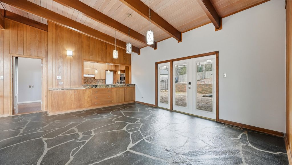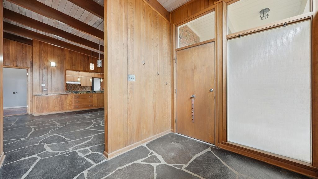 *A RARE OPPORTUNITY FOR LOVERS OF MID-CENTURY DESIGN* Built in 1964, this 4 bedroom, 2 bath mid-century modern home offers timeless architecture and distinctive character. Situated on nearly an acre, the property provides privacy and space in a truly unique setting. Inside, original slate floors ground the home in its mid-century roots, adding warmth, texture and authenticity to the design. At the heart of the home, a private courtyard with a stocked koi pond creates a peaceful outdoor retreat. A spiral staircase from the main floor leads to a partially finished basement, offering additional flexible space or an opportunity to expand the home. A property like this is more than a home-it's an opportunity perfect for someone who appreciates unique architecture.