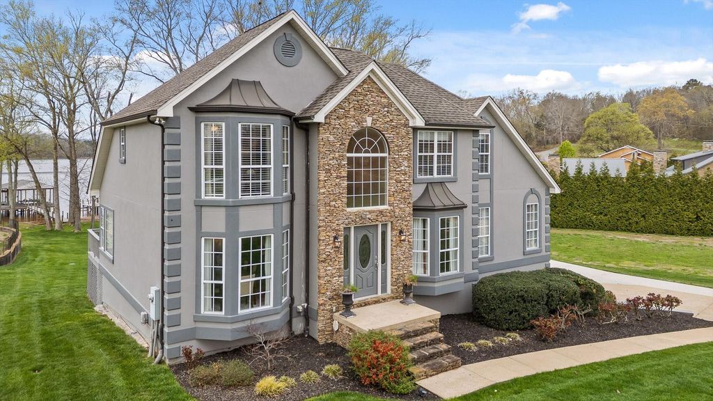 Experience incredible waterfront living at 6422 Ware Branch Cove Drive, nestled in this sought-after community in Harrison, Tennessee. Imagine waking up each morning to the sun shimmering across the water right in your own backyard. As you step inside this beautiful traditional home, you're welcomed by a grand two-story foyer, with a living room on one side and a dining room on the other--perfect for both everyday living and entertaining. The home opens into the kitchen, breakfast area, and family room featuring a cozy fireplace and a wall of French doors that lead out to a large deck overlooking the lake--an ideal spot to relax or host guests. The large main-level en-suite offers comfort and convenience, tucked privately on the opposite side of the home from the kitchen. Upstairs, you'll find three additional bedrooms and two full bathrooms, providing plenty of space for family or guests. The finished basement adds even more living space with a versatile den, along with a spacious two-car garage and ample storage. Car enthusiasts and hobbyists will appreciate the impressive detached garage--perfect for multiple vehicles, a boat, or a workshop. Above it, you'll find an additional 475 sq. ft. of finished space. Just outside, enjoy a covered outdoor kitchen area, ideal for entertaining year-round. Step into the backyard and follow the gentle slope down to your private covered dock, complete with power lifts for a boat and wave runners. This is lakefront living at its finest--where every day feels like a getaway.