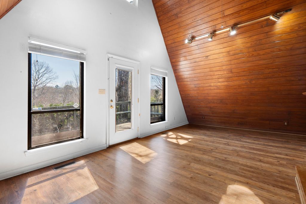 Welcome to this charming A-Frame nestled in the waterfront community of Soddy-Daisy. This 3 bedroom, 3 full bath home offers approximately 1,800 square feet and features an open-concept living area with soaring vaulted ceilings that flow seamlessly into the kitchen and dining space, with direct access to the screened-in patio--perfect for weeknight grilling or hosting friends and family on the weekends. Each floor offers its own bedroom and full bathroom, providing comfort and privacy for residents and guests alike. Tucked away on a quiet street, this home offers a peaceful retreat while still being just a 30-minute drive to Downtown Chattanooga. Enjoy the serene surroundings from the screened-in patio or host friends and family on the deck, perfect for relaxing or entertaining. Spend your weekends on the water by launching your boat at nearby Armstrong Bridge Boat Ramp for fishing and lake adventures. With many newer homes nearby, this growing pocket of Soddy-Daisy continues to draw attention for its peaceful setting and convenient location. Ideal as a primary residence or weekend getaway.