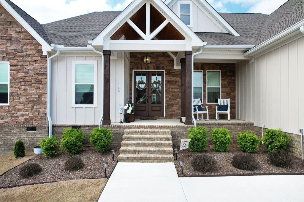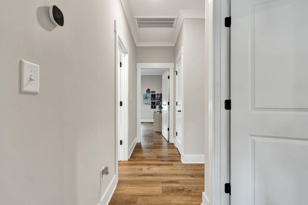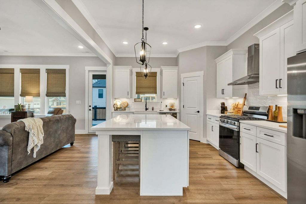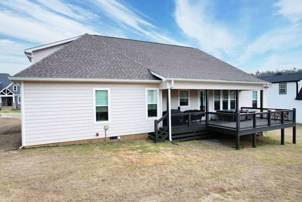 Welcome to this spacious and well-appointed 4-bedroom, 3-bath ranch-style home offering comfort, style, and functionality in a desirable community setting. Featuring high ceilings and luxury vinyl flooring paired with durable vinyl throughout, this home provides a modern, low-maintenance living environment. The main living area is highlighted by a cozy gas log fireplace, perfect for relaxing evenings. The kitchen includes a convenient pantry, offering ample storage and everyday functionality. The thoughtfully designed split bedroom floor plan offers added privacy, with a primary suite located on the main level featuring walk-in closets and plenty of space to unwind. Additional bedrooms are generously sized, ideal for family, guests, or flexible use. Step outside to enjoy both a welcoming front porch and a rear deck, perfect for outdoor living and entertaining. The attached 2-car garage adds convenience and additional storage. Located in a community rich with amenities, residents enjoy access to a clubhouse, pool, sidewalks, and street lights--enhancing both lifestyle and walkability. This home offers the perfect balance of comfort, convenience, and community--schedule your showing today!