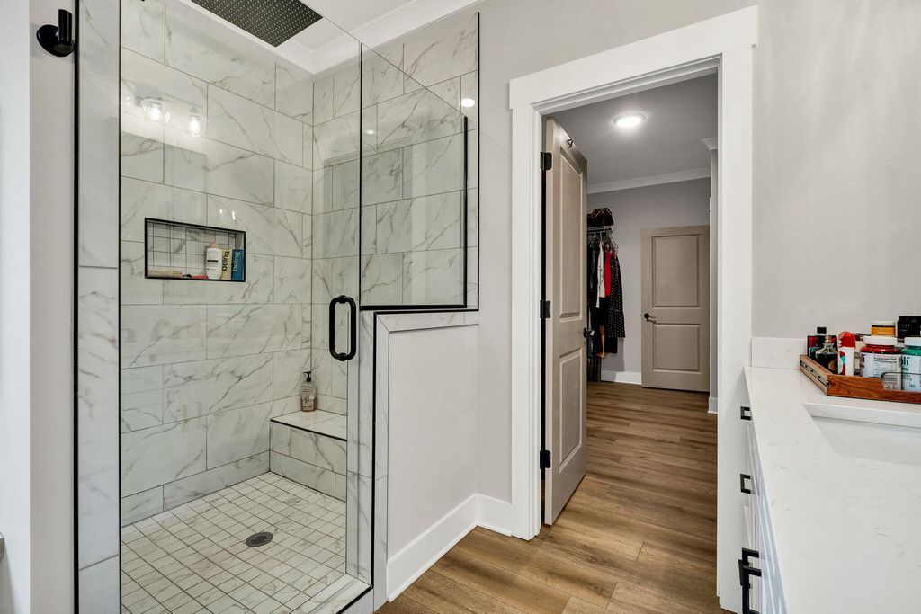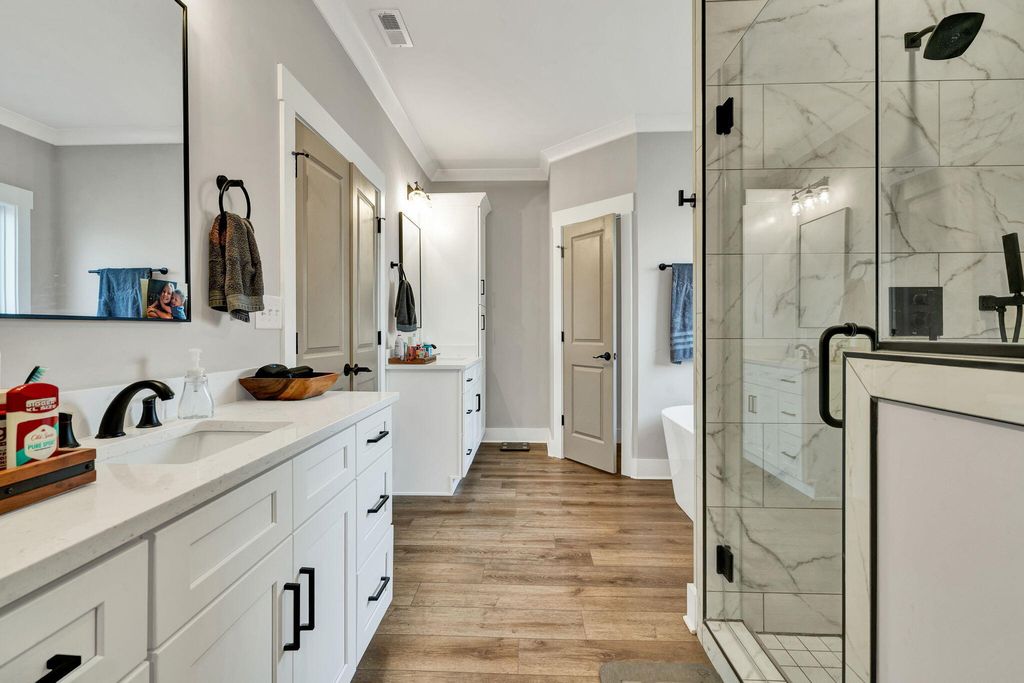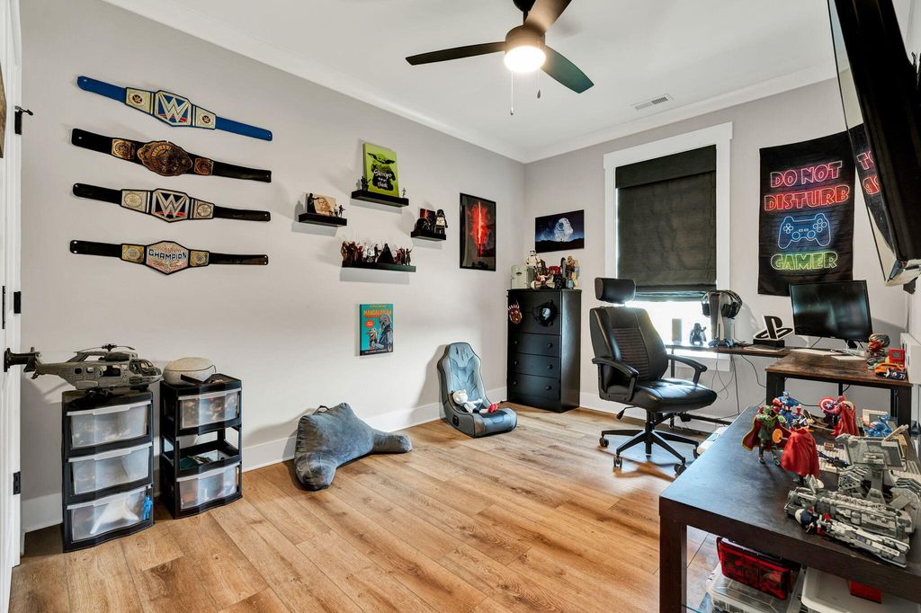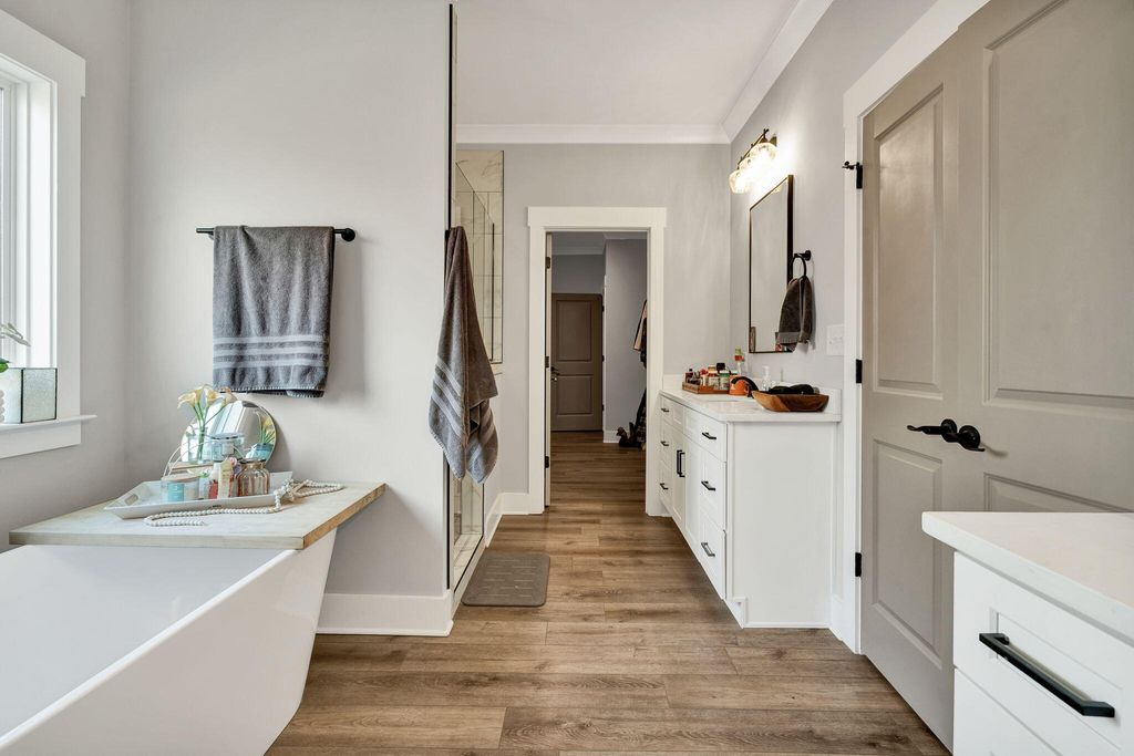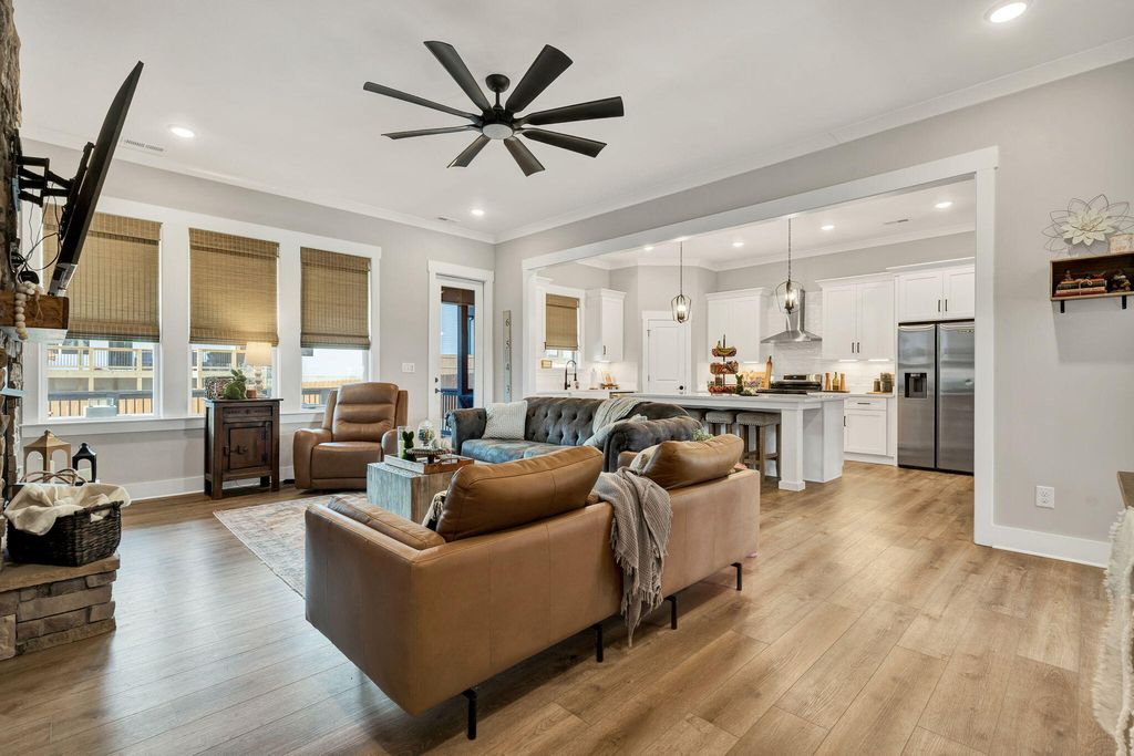 Welcome to this spacious and well-appointed 4-bedroom, 3-bath ranch-style home offering comfort, style, and functionality in a desirable community setting. Featuring high ceilings and luxury vinyl flooring paired with durable vinyl throughout, this home provides a modern, low-maintenance living environment. The main living area is highlighted by a cozy gas log fireplace, perfect for relaxing evenings. The kitchen includes a convenient pantry, offering ample storage and everyday functionality. The thoughtfully designed split bedroom floor plan offers added privacy, with a primary suite located on the main level featuring walk-in closets and plenty of space to unwind. Additional bedrooms are generously sized, ideal for family, guests, or flexible use. Step outside to enjoy both a welcoming front porch and a rear deck, perfect for outdoor living and entertaining. The attached 2-car garage adds convenience and additional storage. Located in a community rich with amenities, residents enjoy access to a clubhouse, pool, sidewalks, and street lights--enhancing both lifestyle and walkability. This home offers the perfect balance of comfort, convenience, and community--schedule your showing today!