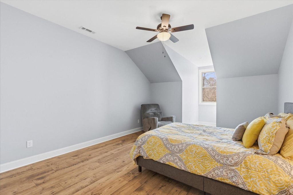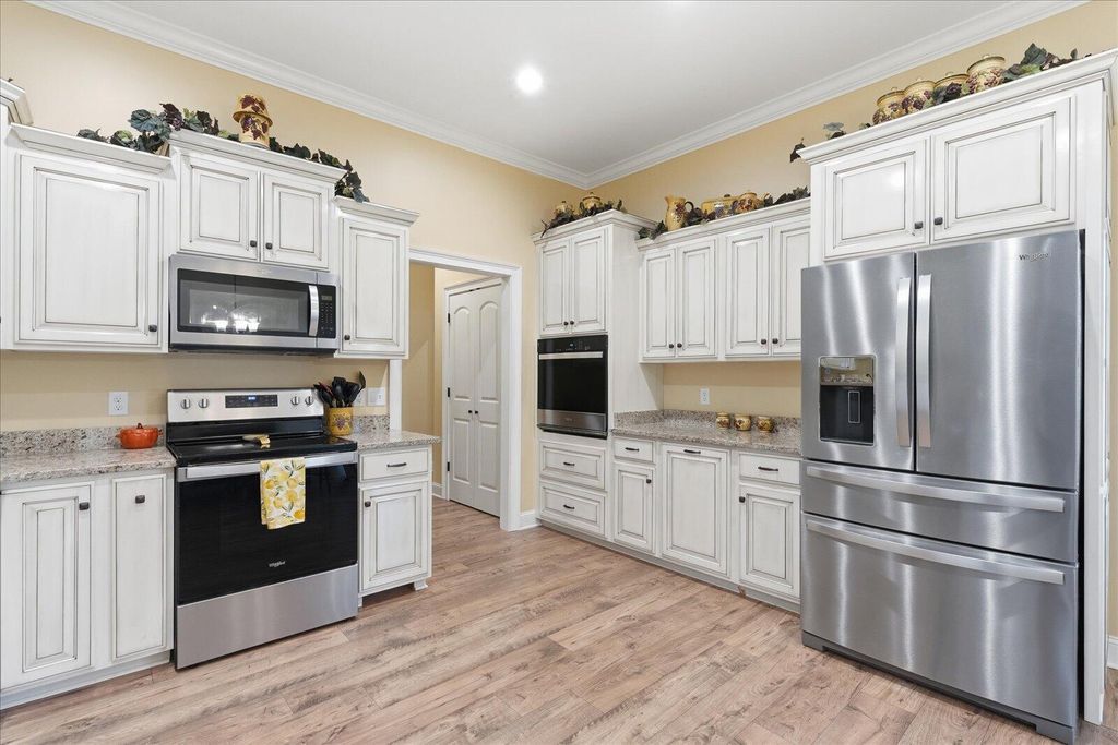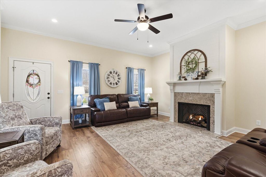 Nestled on 2 acres in a beautiful pocket of Gruetli-Laager, this 5 bedroom, 3 bath, 3,200± sq ft home brings privacy and nature together in a warm, welcoming retreat. From the oversized 3-car garage and easy parking for RVs and toys to the inviting front porch, every detail was designed for comfortable country living. Inside, the light-filled living room centers around a cozy fireplace and flows into an amazing country kitchen with granite countertops, gorgeous custom cabinetry, double ovens, built-in microwave, crown molding, and recessed lighting, plus easy access to the covered back porch for sweet tea and sunsets. The main-level primary suite offers a very large bedroom and a highly organized his-and-hers walk-in closet, along with a spa-like bath featuring dual sinks, granite, walk-in tiled shower, and soaking tub. A handy study center with built-ins and a spacious indoor laundry room (extra cabinets, hanging rod, and deep-freeze space) make daily life a breeze. Upstairs you'll find a huge game/rumpus room and generous office/study areas, perfect for hobbies, homework, or hosting game night. Ceiling fans throughout, plentiful storage, and spray-foam-insulated spaces add comfort and efficiency. Out back, the covered porch and big open yard deliver classic Southern charm and an open canvas--garden, firepit, or play space--all tucked at the end of a lovely cul-de-sac surrounded by trees and wildlife.